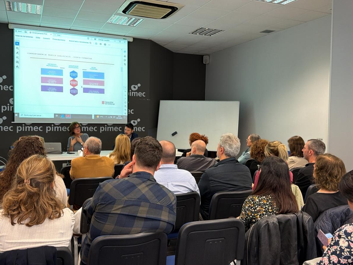 El encuentro contó con la participación de Rosa Carbonell, coordinadora territorial de Enseñanzas Profesionales de la Generalitat de Catalunya; Àngels Brull, vicepresidenta de la Comisión Ejecutiva de PIMEC Tarragona; Imma Estivill, presidenta de PIMEC Formación y Ocupación; y Vicky Moreno, responsable de concertación territorial y políticas activas de ocupación de PIMEC.